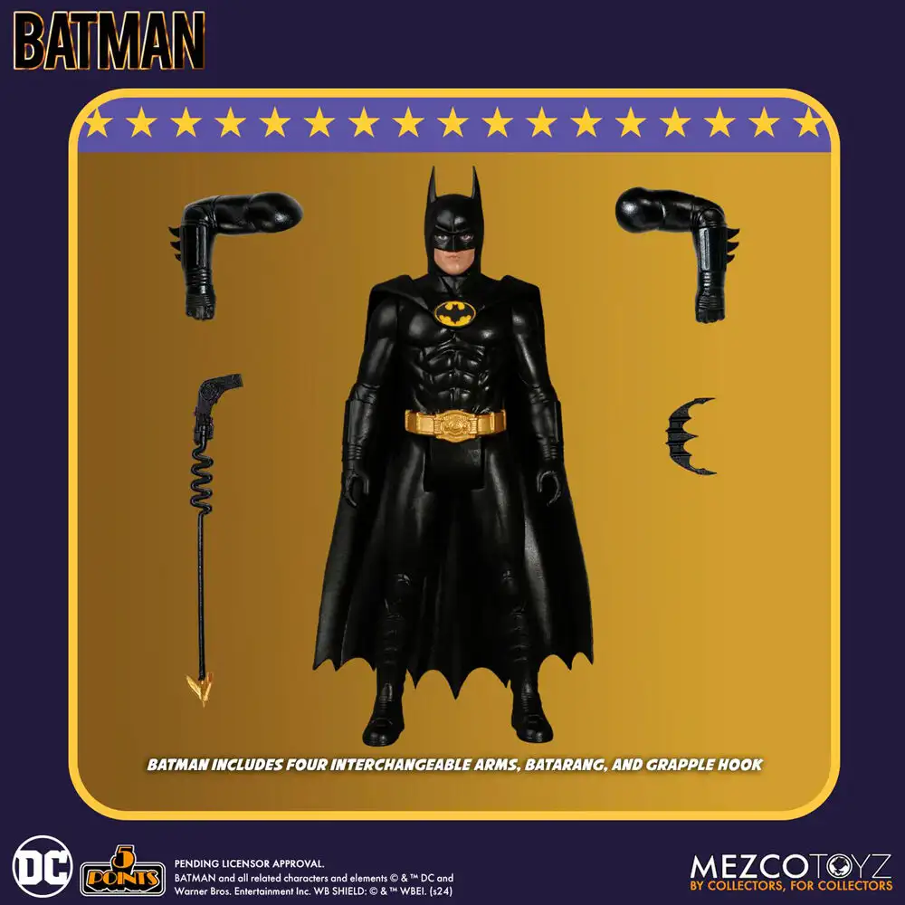 Figura Batman 1989 Universe DC Comics 9,5cm. Tamaño: 9,5cm. Figura articulada. Contiene: 2 brazos extras, 1 batarang y 1 arpón. Producto con licencia oficial MEZCO TOYZ.