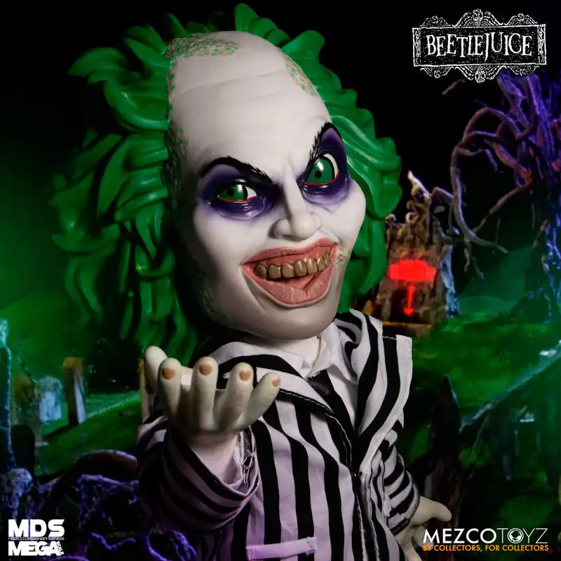 Figura parlante Beetlejuice 38cm. Mega Scale. Bitelchus. Tamaño: 38cm. Muñeco parlante. Contiene pilas 3x LR44. 7 frases en inglés. 11 puntos de articulación. Producto con licencia oficial MEZCO TOYZ.