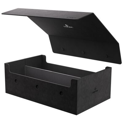 Puede contener varias cajas para mazos, tapetes, accesorios y, por supuesto, un gran número de cartas individuales (incluso las protegidas con fundas rígidas, que son más grandes). El mecanismo de cierre es sutil, pero robusto, gracias a un ingenioso diseño que mantiene la caja firmemente cerrada incluso cuando está completamente llena.