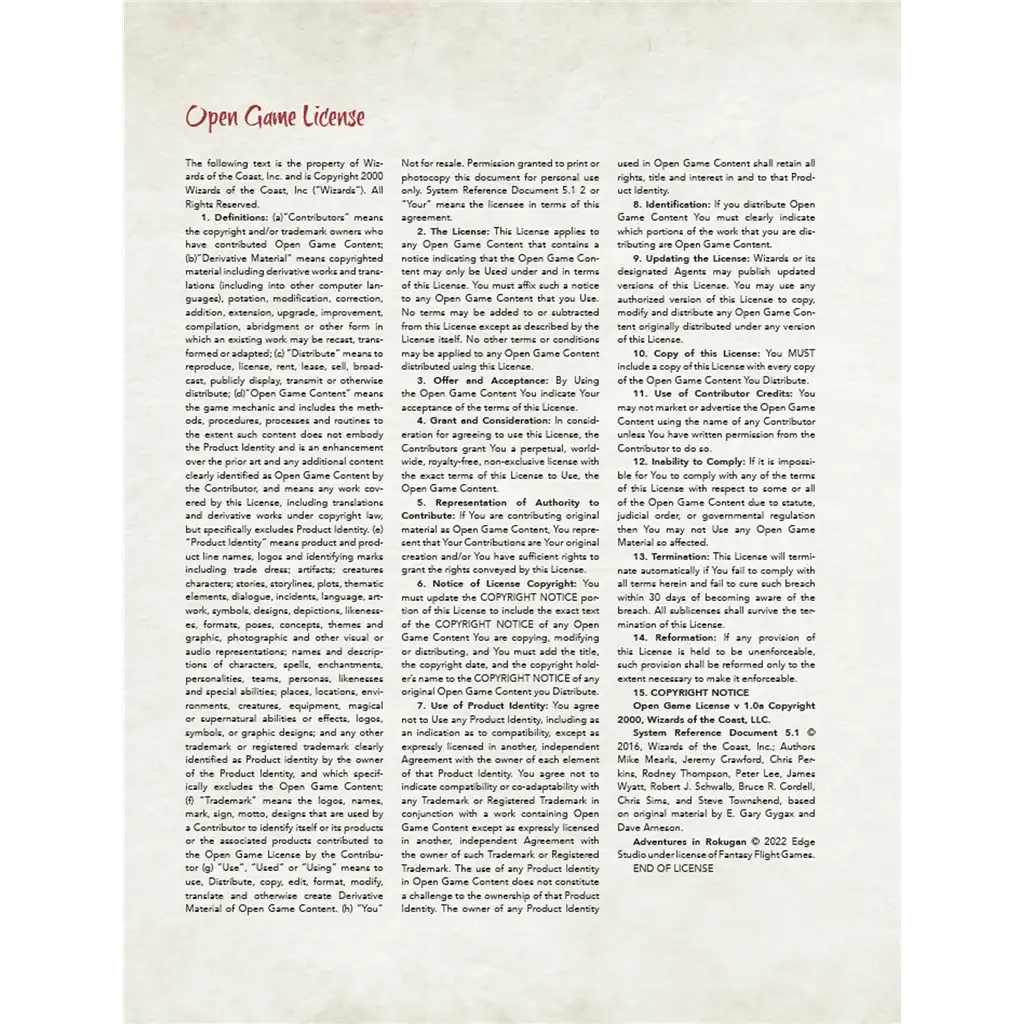 Este producto incluye un libreto de 32 páginas y una pantalla de 3 paneles para el director de juego. Para utilizar este suplemento es necesaria una copia del manual básico de Aventuras en Rokugán y del SRD de 5ª edición.