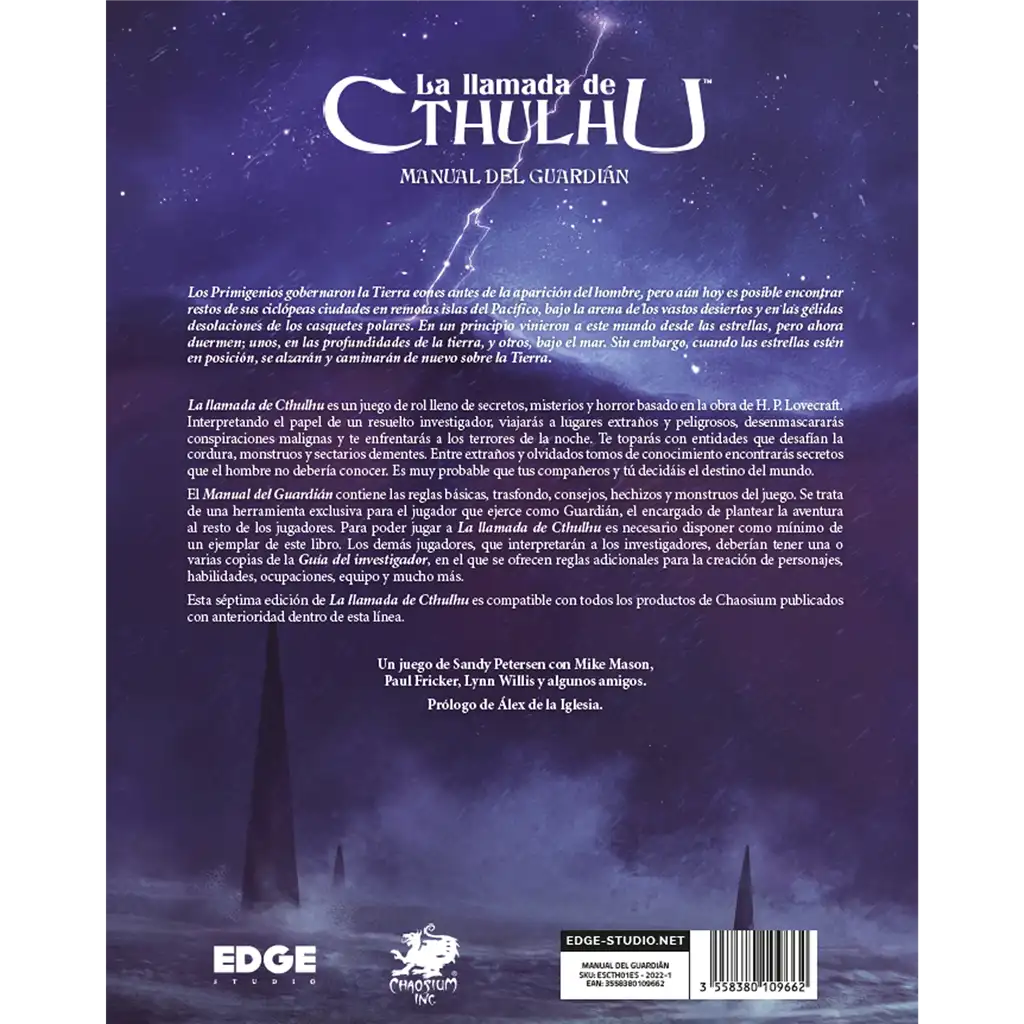 El Manual del Guardián contiene las reglas básicas, trasfondo, consejos, hechizos y monstruos del juego. Se trata de una herramienta exclusiva para el jugador que ejerce como Guardián, el encargado de plantear la aventura al resto de los jugadores. Para poder jugar a La llamada de Cthulhu es necesario disponer como mínimo de un ejemplar de este libro. Los demás jugadores, que interpretarán a los investigadores, deberían tener una o varias copias del Guía del investigador, en el que se ofrecen reglas adicionales para la creación de personajes, habilidades, ocupaciones, equipo y mucho más. Esta séptima edición de La llamada de Cthulhu es compatible con todos los productos de Chaosium publicados con anterioridad dentro de esta línea.