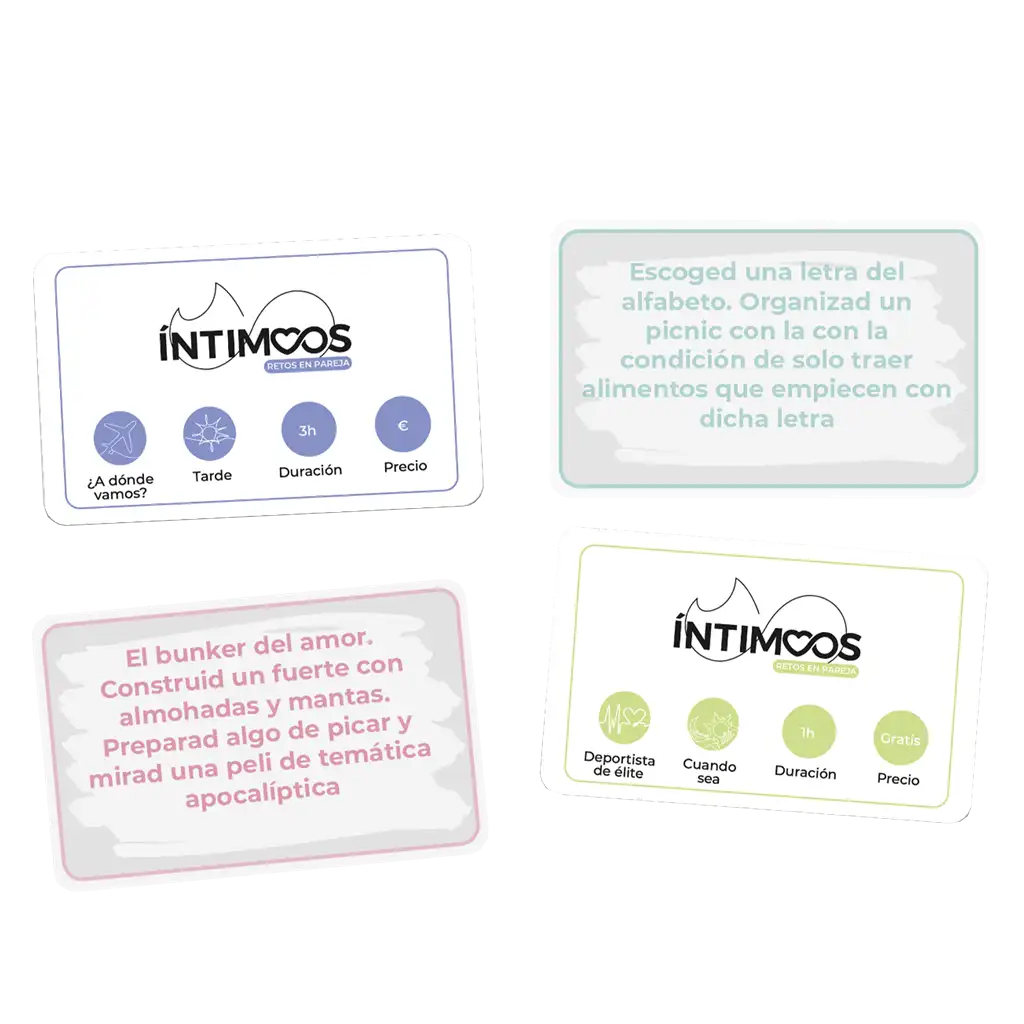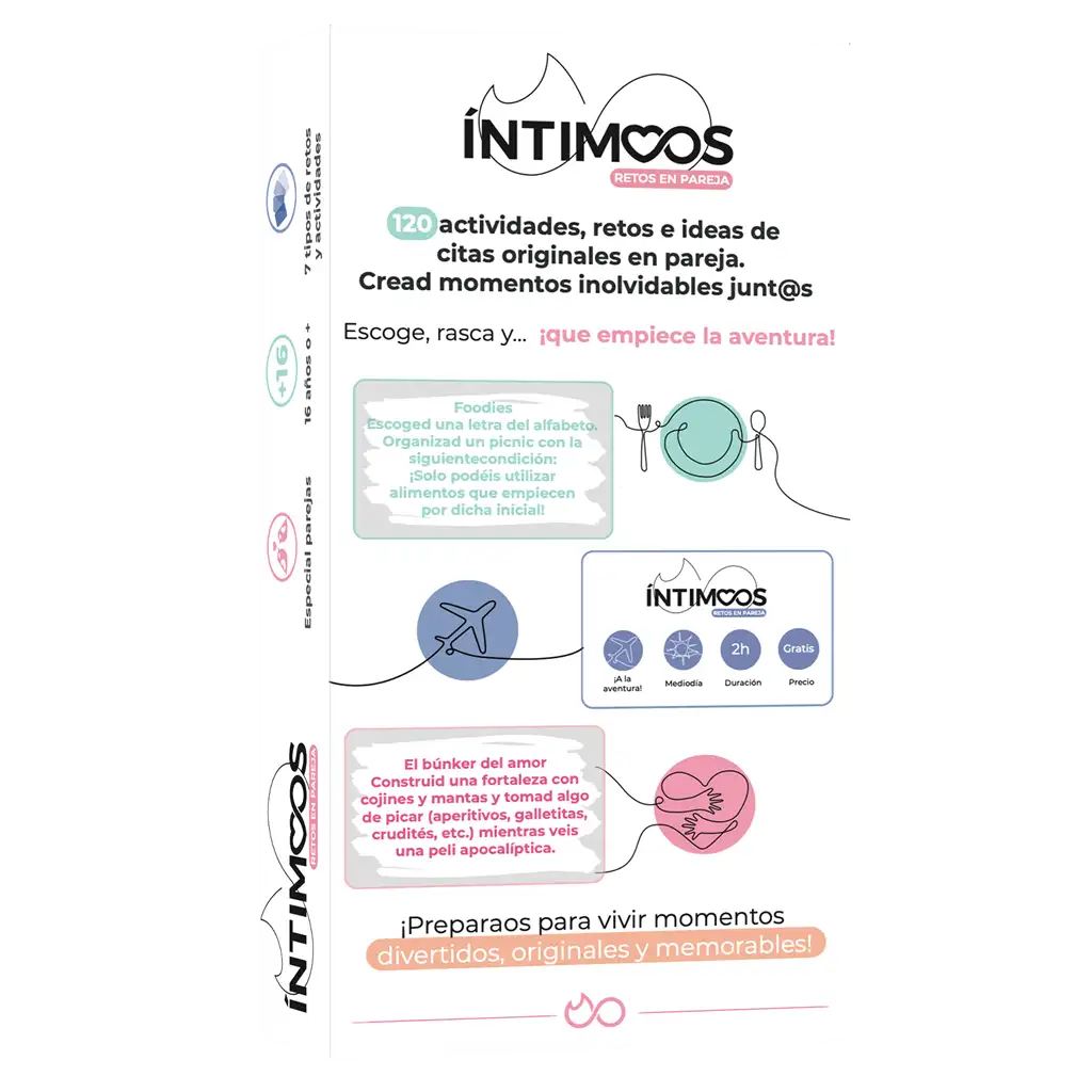 Íntimoos: retos en pareja es un Juego de tablero de la colección Intimoos para 2 jugadores, idioma español y para edades a partir de 16 años. Con una duración 15-45′ por partida.