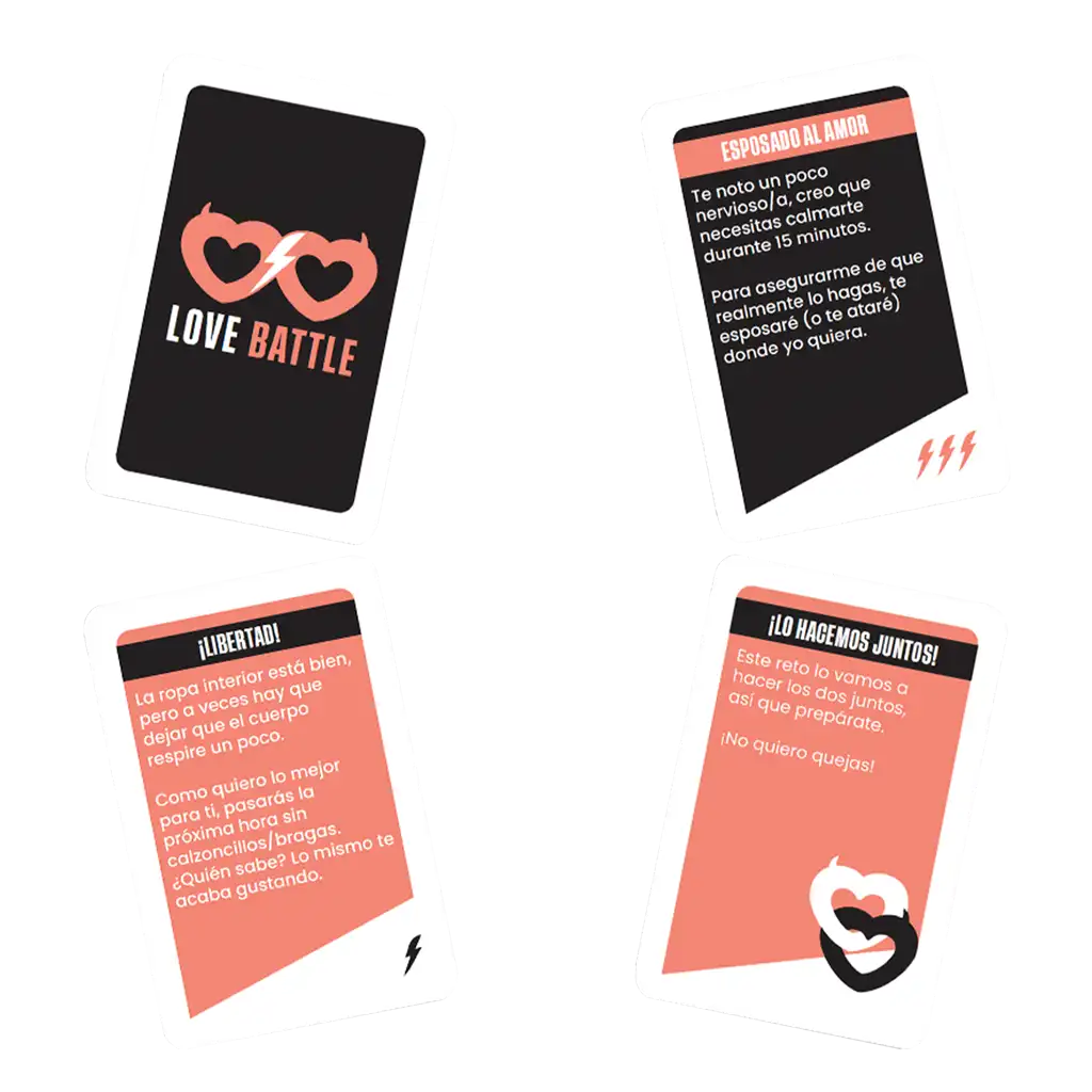 Love Battle es un juego de cartas divertido para gente mayor 16 años. Los jugadores tienen como objetivo proponer actividades o desafíos a su pareja con las que crear situaciones nuevas y divertidas.
