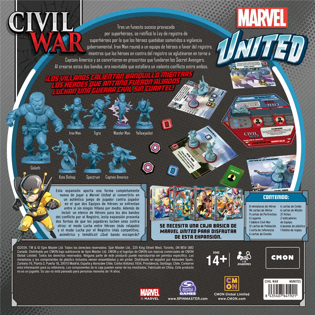 Marvel United: Civil War es un Juego de tablero de la colección Marvel United para 1 a 5 jugadores, idioma español y para edades a partir de 14 años. Con una duración 40′ por partida.