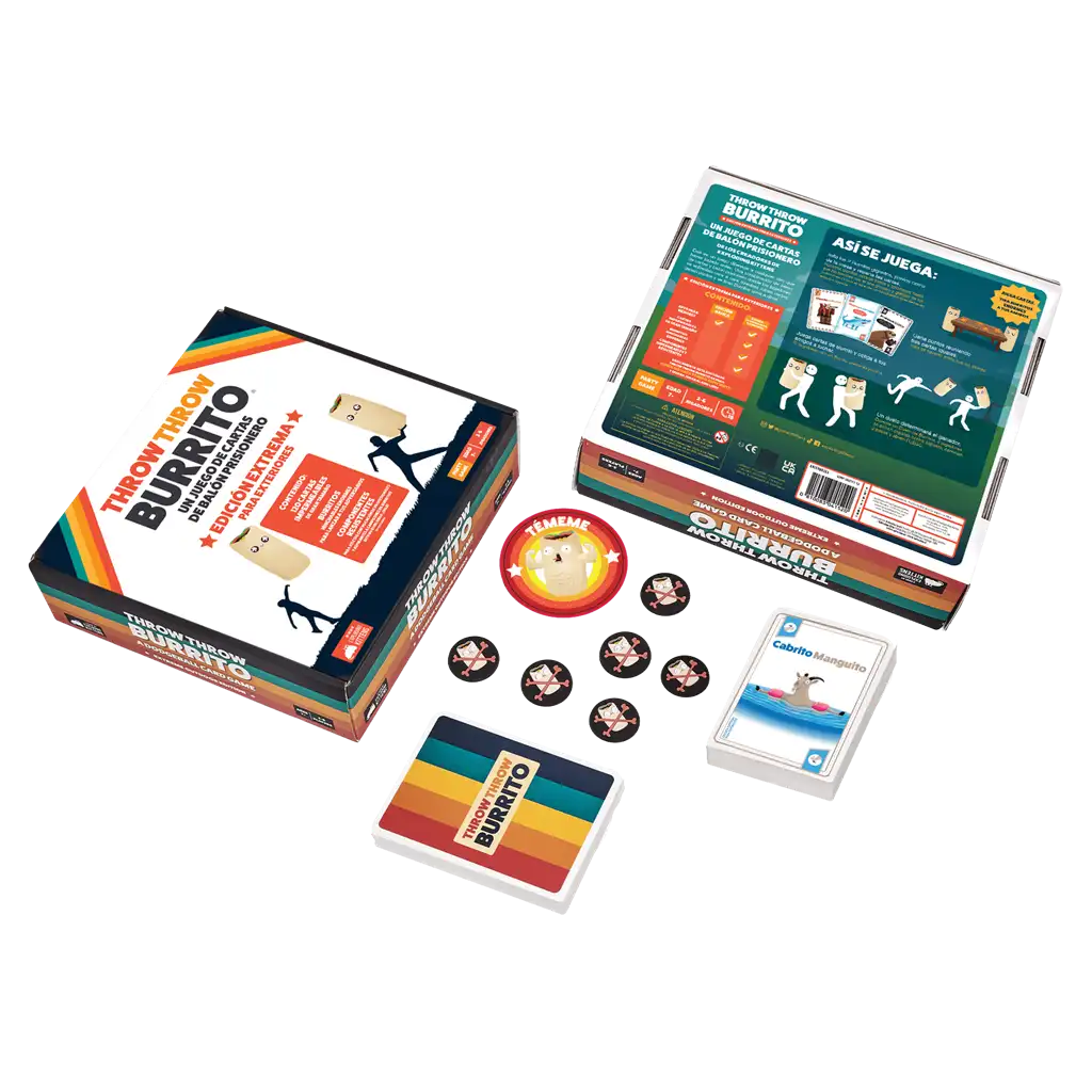 Throw Throw Burrito Ed. Extrema para Exteriores es un Juego de tablero de la colección Throw throw Burrito para 2 a 6 jugadores, idioma español y para edades a partir de 7 años. Con una duración 15′ por partida.