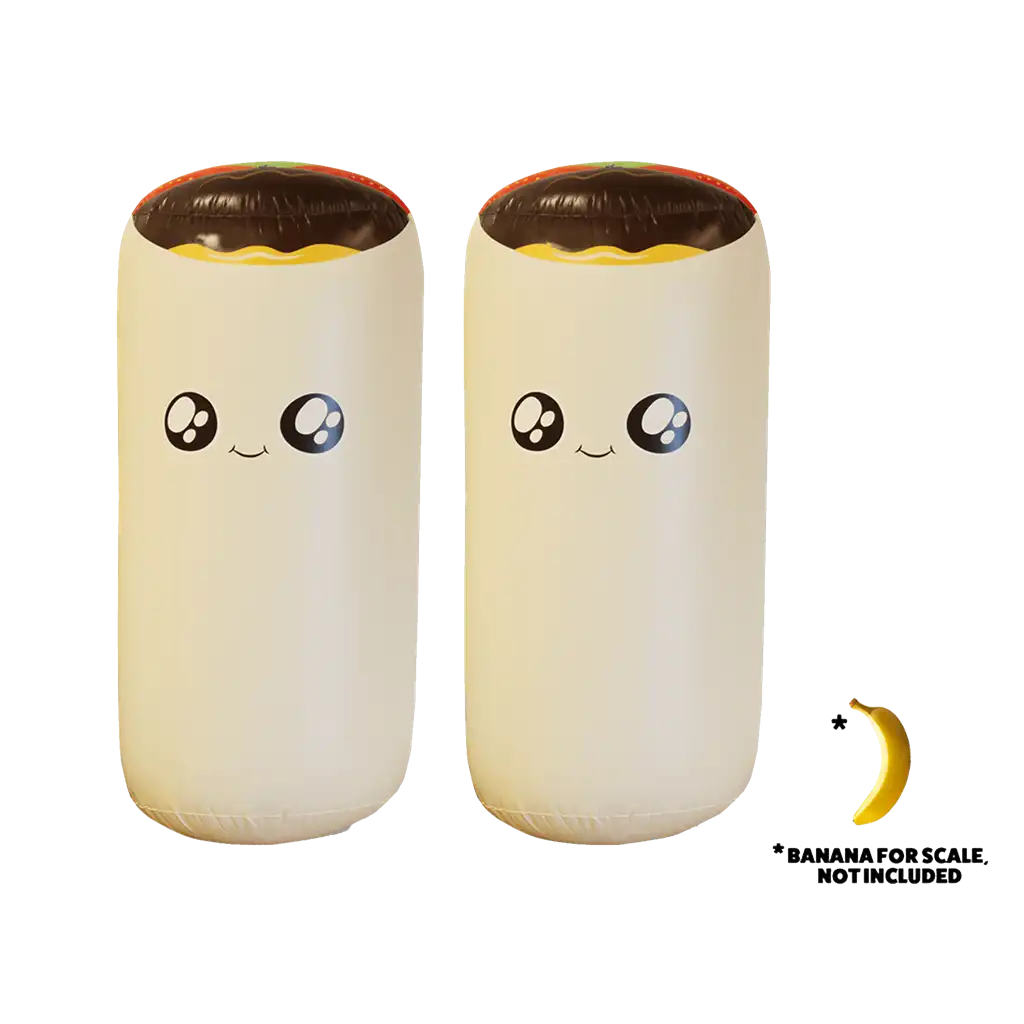 Ya conoces Throw Throw Burrito… ¡Pues ahora prepárate para su versión más extrema! El mismo ritmo frenético y la misma diversión, solo que ahora todos los componentes son mucho más grandes empezando, como no, por dos adorables burritos hinchables con los que protagonizarás las batallas más encarnizadas y los duelos más intensos con tus amigos en el parque, la playa, el campo… ¡O donde se te ocurra siempre y cuando haya espacio para perseguiros unos a otros con un burrito gigante entre las manos!