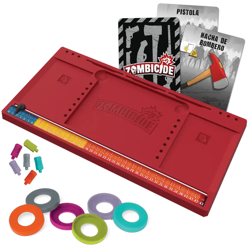 6 paneles de control de Supervivientes, 6 peanas de colores, 48 indicadores, 6 cartas de Equipo, 1 hoja de reglas.