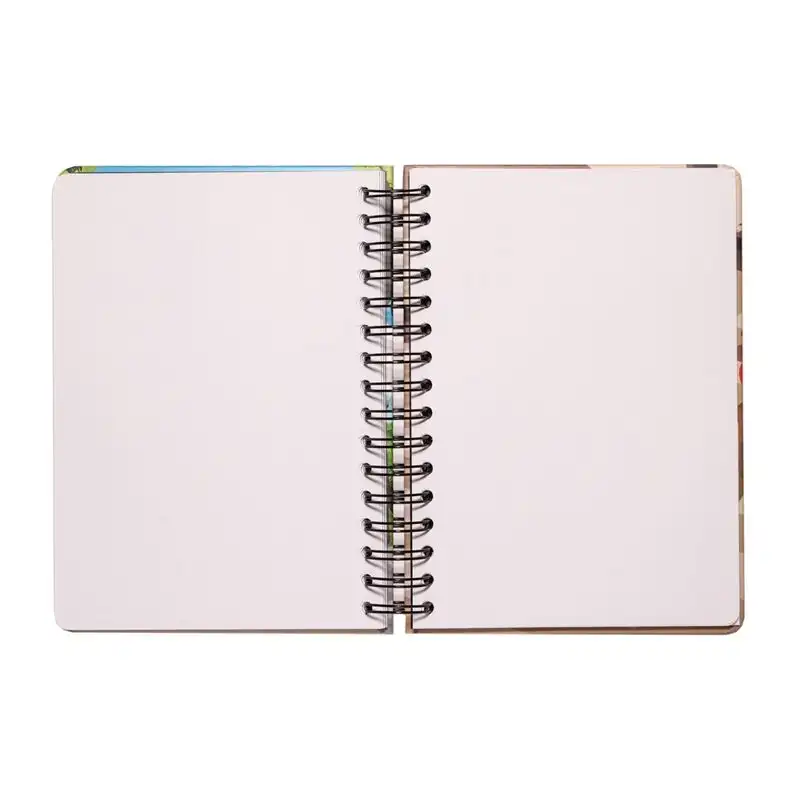 Cuaderno A5 BT21. Tiene 90 hojas de tamaño A5. Cubiertas en tapa dura con encuadernación wire-o. Cierre con banda elástica. Incluye bolsillo interior. Esquinas exteriores redondeadas. Producto con licencia oficial ERIK.